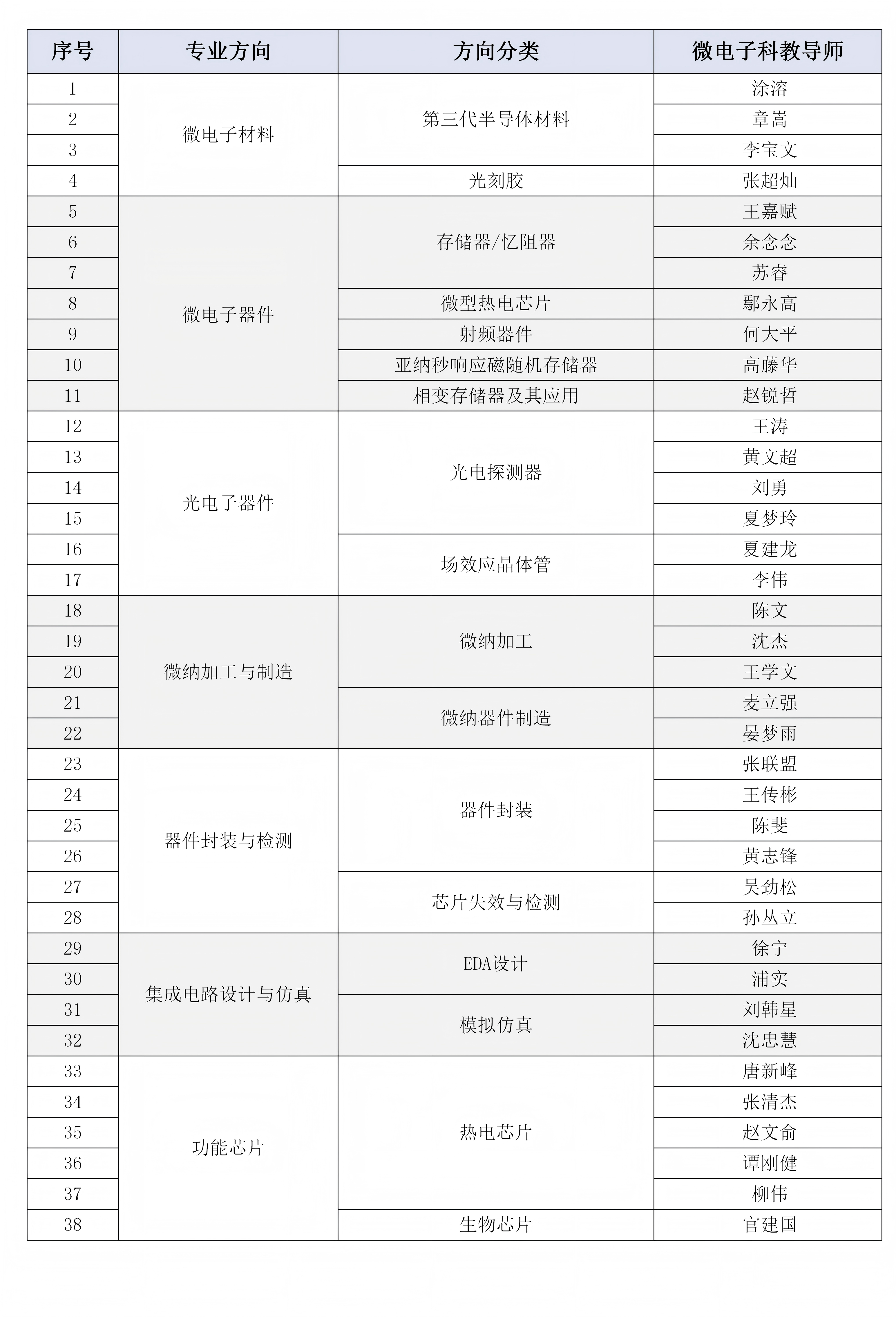 微电子科学与工程拔尖创新人才培养导师团队