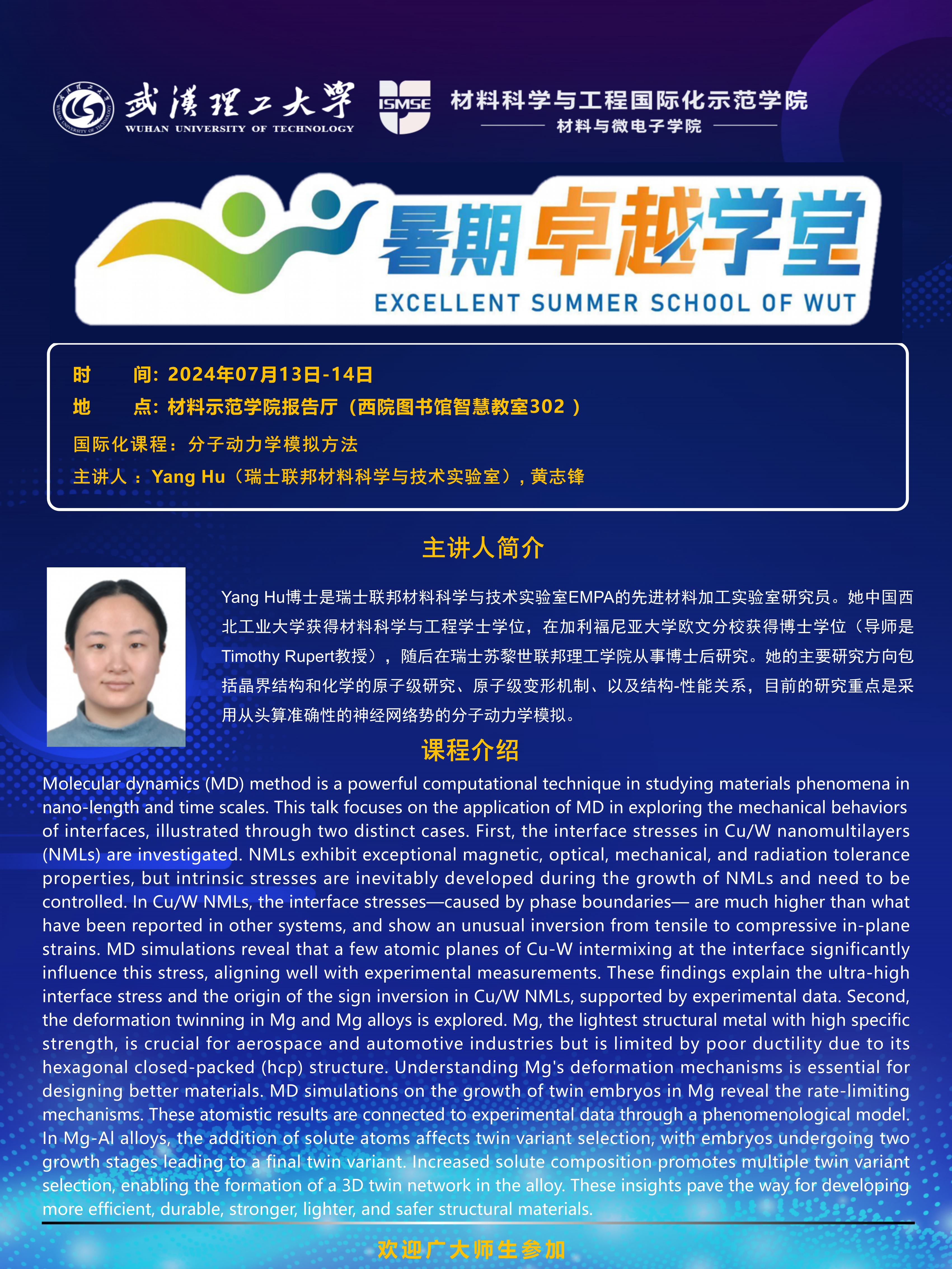 【体育博彩平台 暑期卓越学堂】国际化课程《分子动力学模拟方法》