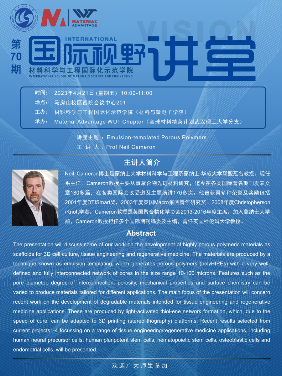 【国际视野讲堂】第70期:蒙纳士大学Neil Cameron教授学术报告会