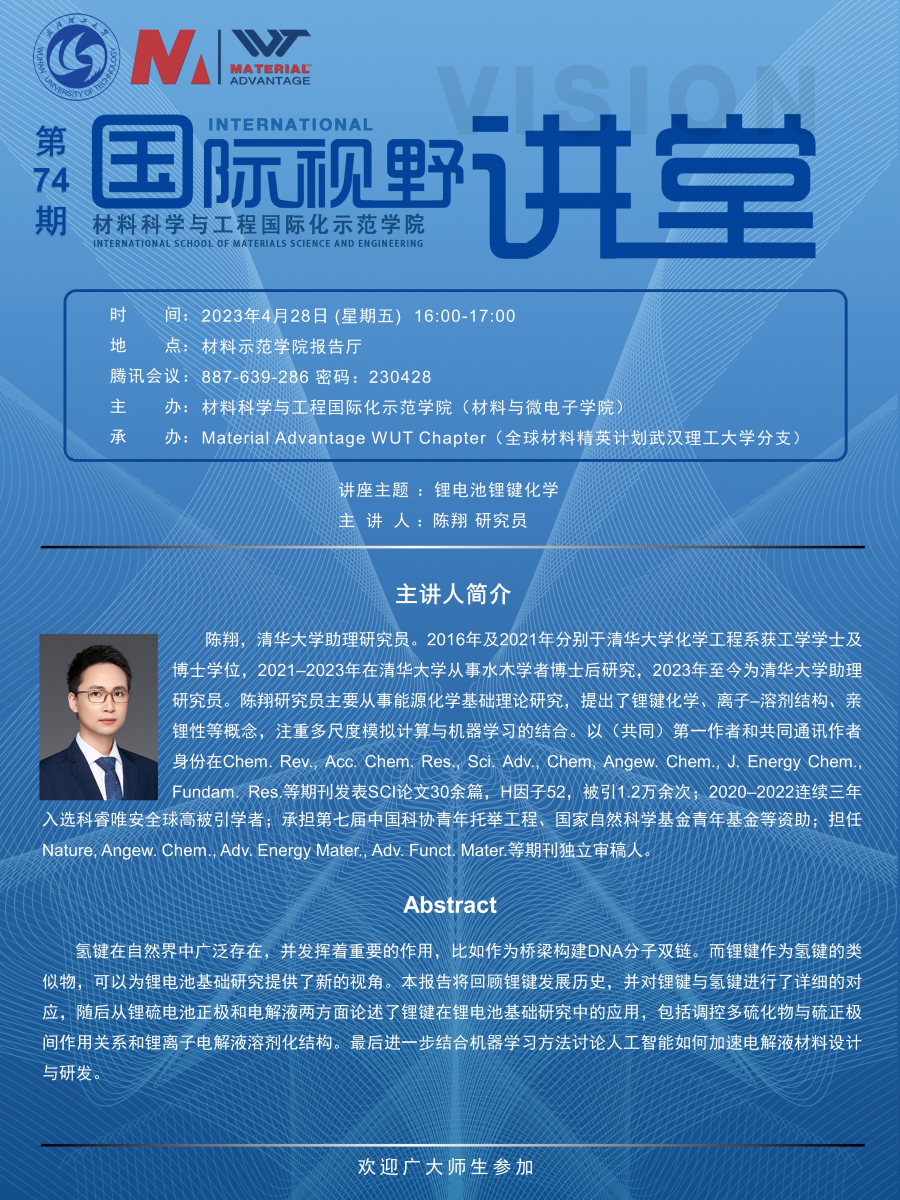 【国际视野讲堂】第74期:清华大学陈翔研究员学术报告会