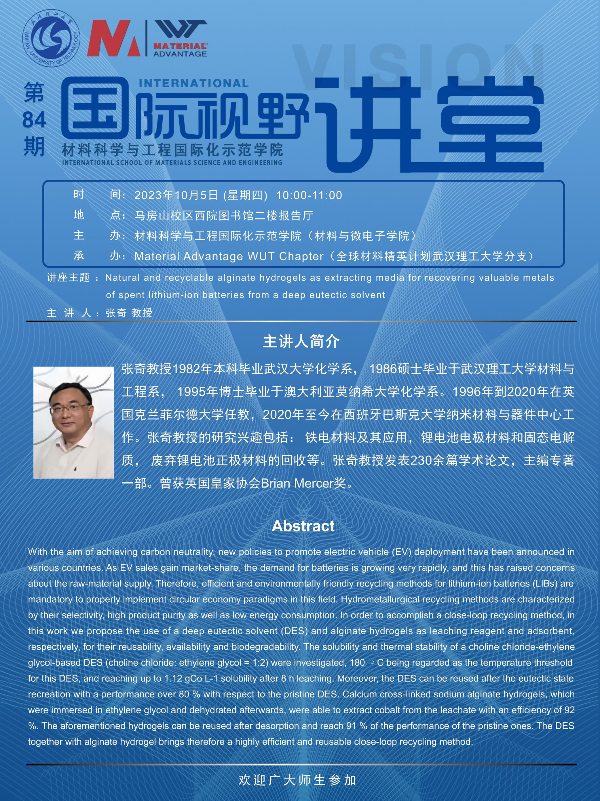 【国际视野讲堂】第84期:西班牙巴斯克大学张奇教授学术报告会