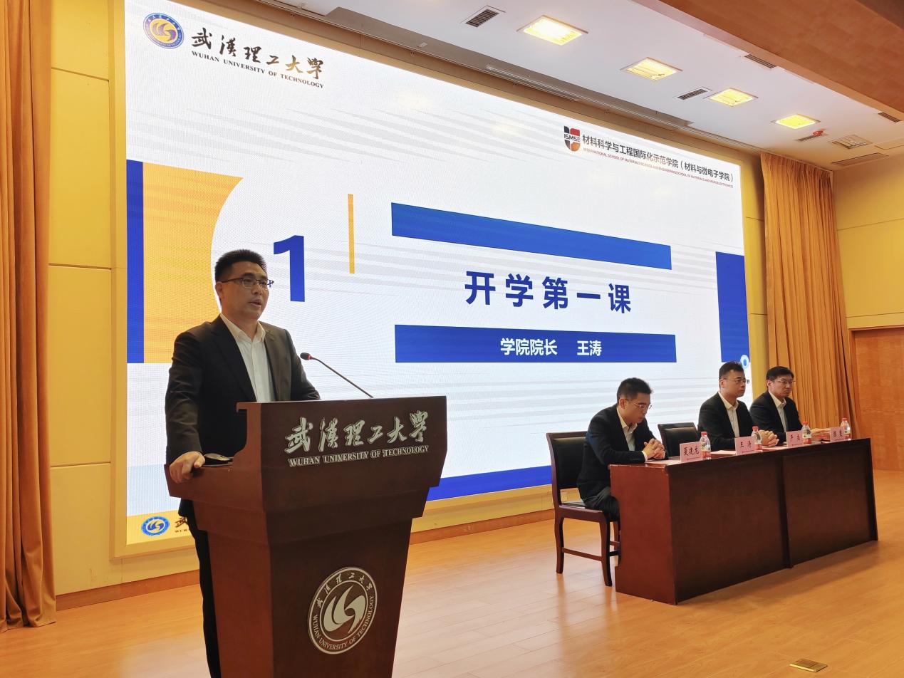 大会伊始,院长王涛以《新时代新征程新起点,争做堪当时代重任的材料三领人才》为题,为135名新生讲授开学第一课。王院长首先对全体新生们表示欢迎,并介绍了体育博彩平台 “科教协同、国际协同、行业协同”的培养理念,强调体育博彩平台 将始终围绕国家创新驱动发展战略和国家高等教育改革需要,构建拔尖人才培养体系,建设世界一流的材料科学与微电子学科。王院长以优秀学长学姐事迹为例激励23级新生铸就坚韧不拔的奋斗精神与直破云霄的攻坚精神,并表达了对于新生们的殷切期望,希望同学们能做到追寻热爱、勤思敏学、奋楫笃行、不负韶华,为祖国贡献自己的青春力量。