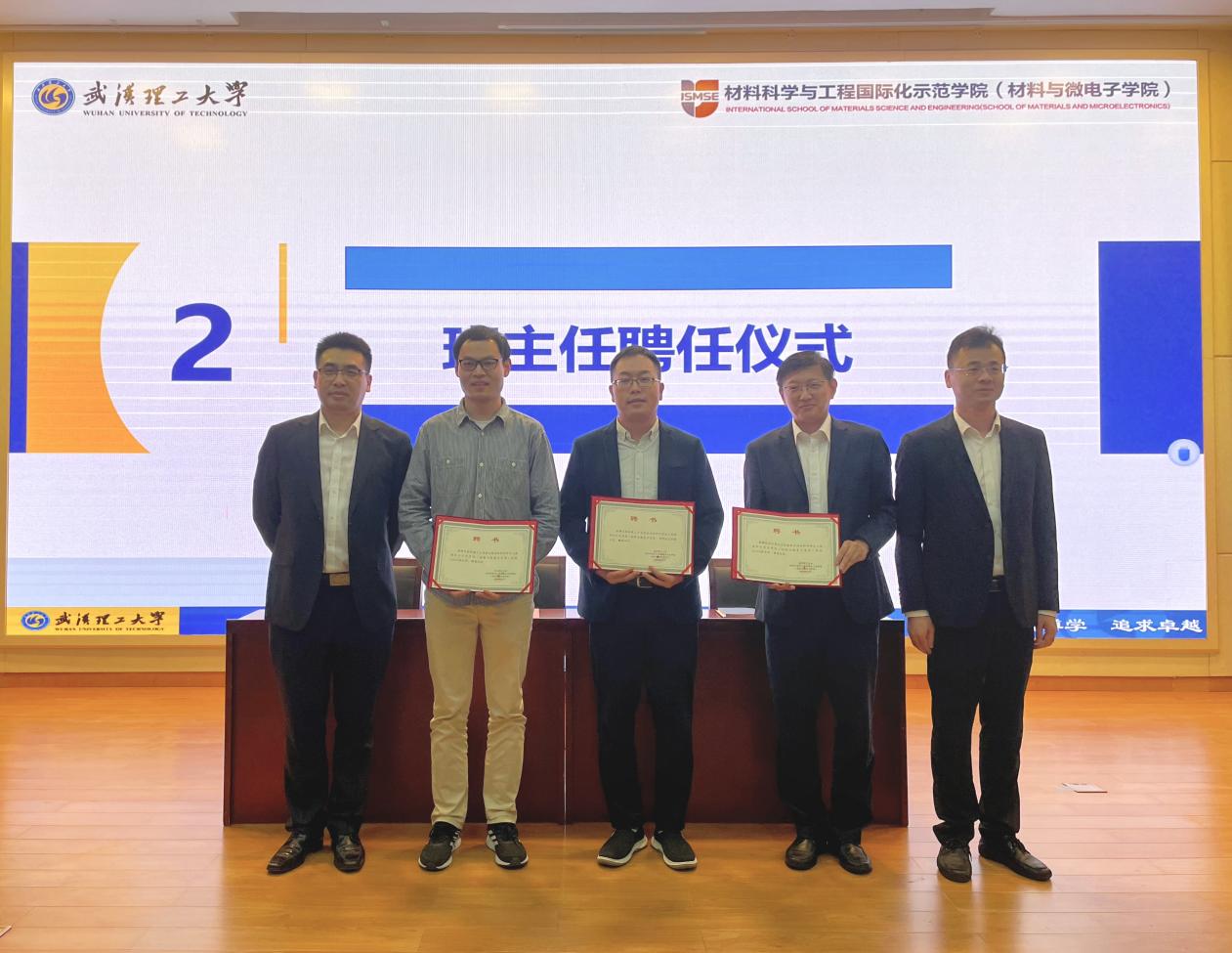 大会进行到第二项,副院长夏建龙宣读班主任聘任文件,聘请张联盟院士、章嵩研究员、晏梦雨研究员、黄志锋老师、韩进老师为体育博彩平台 微电子本硕2301班、材科sy2301班、材科sy2302班、材科sy2303班主任。院长王涛、党委书记严岿为班主任颁发聘书。